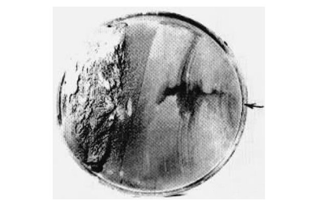 軸斷裂面處于軸上軸承安裝處的過渡圓角區(qū)域(軸承安裝根部)。如果斷口表面齊整并與軸向垂直,無縮頸和塑性變形痕徑。斷口疲勞條帶明顯,從外圓向中心延伸,最終瞬斷區(qū)面積小于軸截面積的 15%。