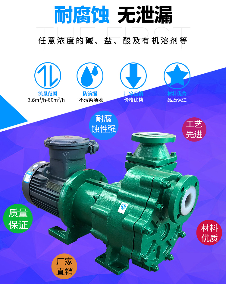 氟塑料磁力自吸泵又稱其為氟塑料自吸磁力泵、襯氟磁力自吸泵、耐腐蝕自吸化工泵,ZMD襯氟磁力自吸泵具有磁力泵和自吸泵的特性,同時(shí)兼具良好的自吸功能。按照國(guó)標(biāo)設(shè)計(jì)研發(fā)可以輸送低位介質(zhì)、罐車原料裝卸、氣液混合介質(zhì)。過流部件緊襯氟塑料,泵體為金屬材料,能夠承受管道重量。取消軸封,利用磁力間耦合驅(qū)動(dòng),不會(huì)滴漏現(xiàn)象,保障工況安全生產(chǎn)。
