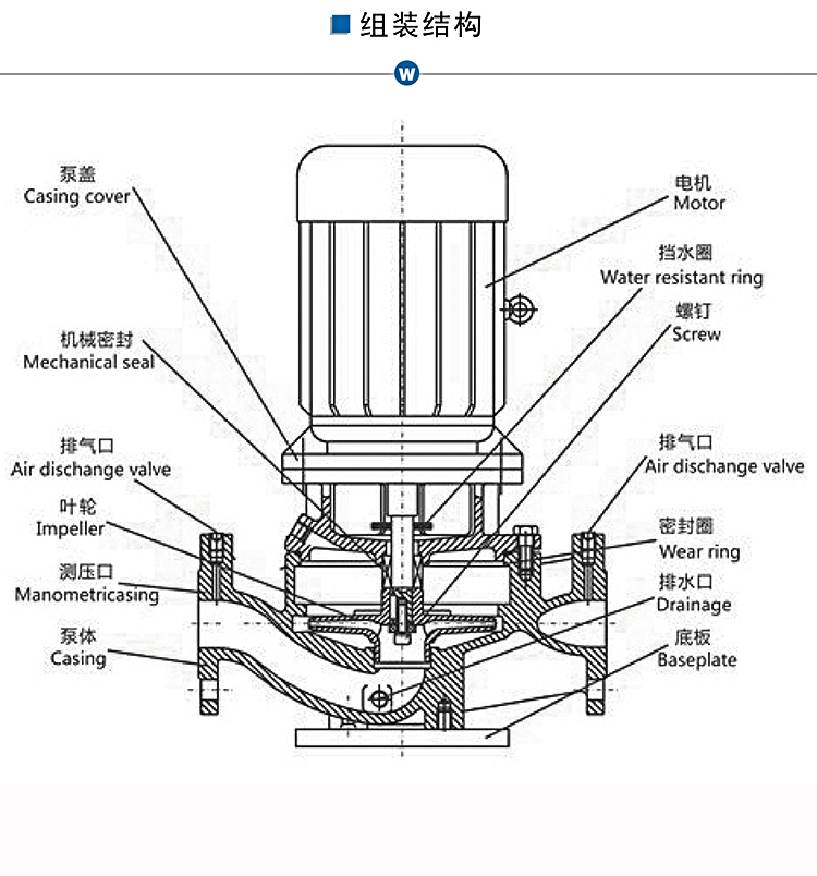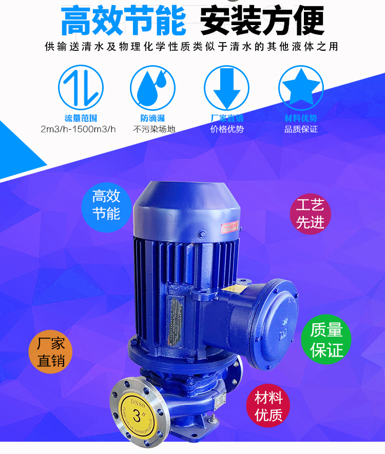 WJLG管道泵為立式結(jié)構(gòu),進(jìn)出口口徑相同,且位于同一中心線上,可象閥門一樣安裝在管路之中,外形緊湊美觀,占地面積小,建筑投入低,如加上防護(hù)罩則可置于戶外使用。葉輪直接安裝在電機(jī)的加長(zhǎng)軸上,軸向尺寸短、泵與電機(jī)軸承配置合理,能有效地平衡泵運(yùn)轉(zhuǎn)產(chǎn)生的徑向和軸向負(fù)荷,從而保證了泵的運(yùn)行平穩(wěn),振動(dòng)噪音很低。安裝檢修方便面,無(wú)需拆動(dòng)管路系統(tǒng),只要卸下泵聯(lián)體座螺母即可抽出全部轉(zhuǎn)子部件??筛鶕?jù)管路布置的要求采用泵的豎式和橫式安裝。ISG管道泵分基本型、分流型、切割型,材質(zhì)可選:鑄鐵、201、304、316L,等多種規(guī)格。